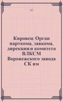 Кировец : Орган парткома, завкома, дирекции и комитета ВЛКСМ Воронежского завода СК им. С.М. Кирова. № 27(86) : № 27(86)