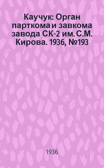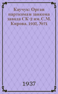 Литвинов Л. Каучук : Орган парткома и завкома завода СК-2 им. С.М. Кирова. 1936, № 166(453) (17 окт.): , 1936, № 166(453) (17 окт.). - 1936. - 2 с