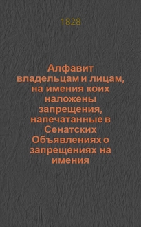 Алфавит владельцам и лицам, на имения коих наложены запрещения, напечатанные в Сенатских Объявлениях о запрещениях на имения. 1827 года : 1827 года