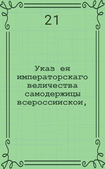 Указ ея императорскаго величества самодержицы всероссийской, : О невзимании никаких сборов и пошлин с товаров и с других кладей, провозимых по Ладожскому каналу, и сухим путем мимо Ижорской таможни; и о сборе двух процентов с рубля на починку онаго канала, только с тех товаров, которые по привозе поступят в заграничный отпуск : Из Правительствующаго Сената, объявляется во всенародное известие