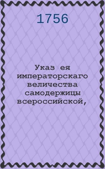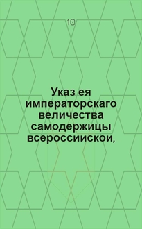 Указ ея императорскаго величества самодержицы всероссийской, : О поимке и наказании разгласителей молвы, будто бы к находящимся в Астрахани виноградным садам принимать велено всякаго звания людей, кто б откуда не пришел : Из Правительствующаго Сената, объявляется во всенародное известие. В данной книге описывается