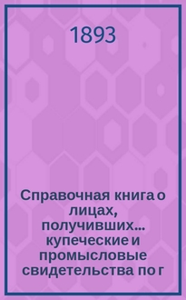 Справочная книга о лицах Петроградского купечества и других званий, акционерных и паевых обществах и торговых домах, получивших... сословные свидетельства по 1-й и 2-й гильдиям, промысловые свидетельства 1 и 2 разрядов на торговые предприятия, 1-5 разрядов на промышленные предприятия, 2 и 3 разрядов на личные промысловые занятия... на 1871 год