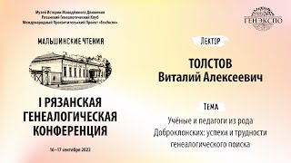 РЯЗАНСКАЯ ГЕНЕАЛОГИЧЕСКАЯ КОНФЕРЕНЦИЯ «МАЛЬШИНСКИЕ ЧТЕНИЯ» 16 - 17 сентября 2022 года. Толстов ...
