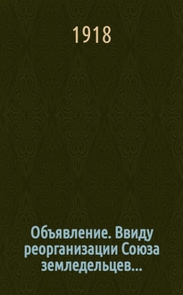 Объявление Архангельского Уездного по Воинской Повинности Присутствия. "Согласно приказа Командующего войсками Северной Области от 3-го Апреля 1919 г. за N° 107... будет произведена платная реквизиция лошадей...". - Архангельск : Губернская Типография, [1919, июль, после 12 - авг., до 15]. - Электронная копия доступна в Электронной библиотеке РНБ. 1 с. ; 28x16 см