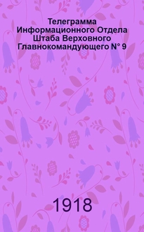 Телеграмма к неофициальной части "Вестника Тоб. Губернии...". N° 150, Среда, 18 июня 1919 года. Вечерняя. "Оперативная сводка штаба Верховного Главнокомандующего. За 13 июня...". - [Тобольск] : Тобольская Губернская Типография, [1919, июнь, 18]. - Электронная копия доступна в Электронной библиотеке РНБ. 2 с. в 2 стб. ; 32х17 см