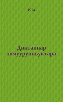 Ааллааҕыскай Н. А. Диктаннар хомуурдара : учууталларга пособие : нач. оскуола бэлэмниир, маннайгы уонна иккиc кылаастарыгар / Н. А. Ааллааҕыскай; Учууталлар идэлэрин үрдэтэр Саха респ. ин-т. - [Якутскай] : 1954 с. респ. "Пед. аҕыыларга" биһирэммит дакыллаат, 1954. - 52,[2] с. ; 20 см