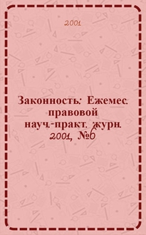Законность : Ежемес. правовой науч.-практ. журн. 2001, № 1 (795)