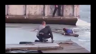 Спасение девушки, провалившейся под лед