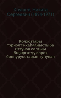 Каганович Л. М. Колхозтары бѳҕѳргѳтүү уонна сааскы ыhыы соруктара : Бүтүн Союз үрдүнээги колхозтаах ударниктар I cъезтэригэр 1933 с. oлунньу 16 к. таб. Kaганович oңoрбут дакылаата. ("Kыым" хаһыаттан уhуллан бэчээттэннэ) / Kaганович. - Дьокуускай : Судаар. Саха сир. бэчээт. суута, 1933. - 66 [1] c. ; 20 см
