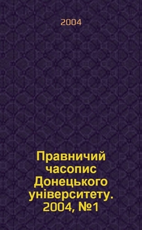 Правничий часопис Донецького університету. 2002, № 1 (7):. - 2002
