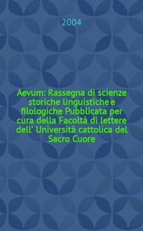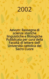 Aevum : Rassegna di scienze storiche linguistiche e filologiche : Pubblicata per cura della Facoltà di lettere dell’ Università cattolica del Sacro Cuore. A. 87 2013, № 1:. - 2013