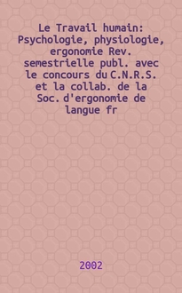 Le Travail humain : Psychologie, physiologie, ergonomie Rev. semestrielle publ. avec le concours du C.N.R.S. et la collab. de la Soc. d'ergonomie de langue fr. Vol. 76, № 4