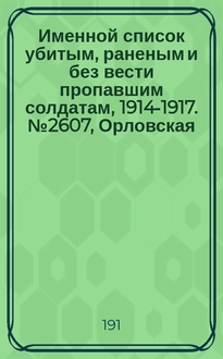 Именной список убитым, раненым и без вести пропавшим нижним чинам, [1914-1917]. № 821, Нижегородская, Новгородская, Оренбургская и Орловская губернии. - [Петроград] : Военная типография императрицы Екатерины Великой, [191-?]. - С. 13121-13136 ; 28 см Заказать реферат