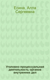 Барабаш А. С. Уголовно-процессуальная деятельность : курс лекций : [для студентов и слушателей , обучающихся по специальности 030505.65 Правоохранительная деятельность по очной и заочной форме обучения] / А. С. Барабаш; Федер. гос. каз. образоват. учреждение высш. проф. образования "Урал. юрид. ин-т М-ва внутр. дел Рос. Федерации", Каф. уголовного процесса. - Екатеринбург : Уральский юридический институт МВД России, 2014. - 164 с. ; 21 см. - Библиогр.: с. 158-164 и в подстроч. примеч.