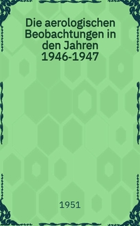 Rossi V. Die aerologischen Beobachtungen, in den Jahren 1944-1945 / Von Veikko Rossi. - Helsinki, 1951. - [2], 143 с. ; 33 см. - (Meteorologisches Jahrbuch für Finnland ; Bd. 44/45. 1944/1945. T. 3)