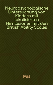 Sauer E. Neuropsychologische Ausfälle nach umschriebenen cerebralen Läsionen bei Kindern in Abhängigkeit von Läsionslokalisation, Läsionsgröße, Läsionszeitpunkt : Unters. mit den Wechsler-Skalen, dem Porteus Labyrinth-Test u. dem Wisconsin Card Sorting Test : Diss / Von Erika Sauer. - [Ulm], 1985. - [1], 88 с. : ил. ; 21 см. - Библиогр.: с. 79-87