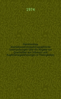 Flammenlose atomabsorptionsspektrographische Untersuchungen über die Abgabe von Quecksilber aus neueren Legierungen von Kupfer- und Silberzinnamalgamfüllungen in Flüssigkeiten : Inaug.-Diss. der Med. Fak. der Univ. zu Tübingen
