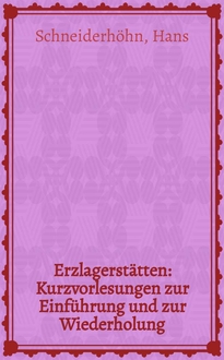 Schneiderhöhn H. Erzlagerstätten : Kurzvorlesungen zur Einführung und Wiederholung / Von Dr. Hans Schneiderheohn, ... Prof. ... - 4., neubearb. Aufl. - Jena : Fischer, 1962. - XVIII, 371 с., 1 л. ил. : ил. ; 23 см. - Библиогр. в тексте