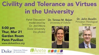 Teresa Bejan and John Bowlin: Civility and Tolerance as Virtues in the University