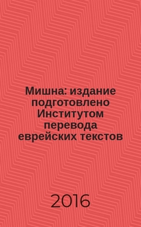Мишна / [подгот. Ин-том пер. евр. текстов; сост.: р. Йегуда га-Наси; пер. с иврита, сост. и коммент.: Меир Левинов; отв. ред.: Марина Гутгарц]. [Т. 4]: , Раздел Кодашим [Святыни]. - 2015. - 824, [2] с. - Библиогр. в подстроч. примеч.