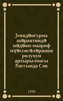 Jенидәнгурма вә гиjаби тәһсил мәсәләләри : елми-методик мушавирәнин материаллары (16 окт. 1987) / В. И. Ленин ад. Азәрб. дөв. пед. ин-ту; [ред. һеj'әти: проф. А. М. Гурбанов вә б. ]. - Бакы : АДПИ, 1988. - 141 с. ; 20 см