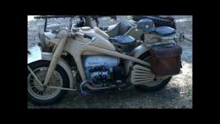 BMW R75 1943 750cc 2 cyl ohv Combination Military - starting up and riding