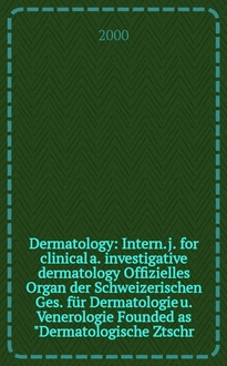 Dermatology : Intern. j. for clinical a. investigative dermatology Offizielles Organ der Schweizerischen Ges. für Dermatologie u. Venerologie Founded as "Dermatologische Ztschr." by Oskar Lassar (1893-1907), continued by Erich Hoffmann (1908-1938), continued as "Dermatologica"(1939-1991), by Wilhelro Lutz (1939-1958), Rudolf Schuppli(1959-1985). Vol. 228, № 4
