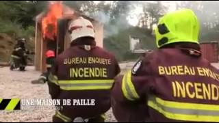 Французские пожарные поджигают соломенный дом, оштукатуренный глиняной штукатуркой, а он не горит.