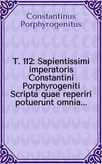 Konstantinos Porphyrogenetos. Sapientissimi imperatoris Constantini Porphyrogeniti Scripta quae repeiri potucrunt omnia, nunc primum in unum collecta / Accurante et denuo recognoscente J.-P. Migne ... - Petit-Montrouge : J.-P. Migne, 1864. - 1 т. ; 28 см. - (Patrologiae cursus completus . Series Graeca posterior ; T. 112)