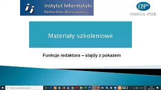 Funkcje redaktora * Menu redaktora * Ogólne zasady wprowadzania danych * Proces wprowadzania danych * Właścicielstwo rekordu * Status rekordu ...