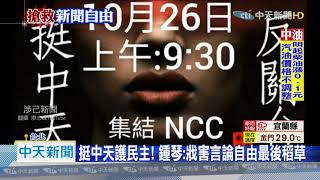 中天新聞台換照案,爆發「中天關定了」風暴,扁政府時代的前新聞局長鍾琴,也出面痛批,這是戕害台灣的言論自由及媒體監督的最後一根稻草,呼籲大家站出來,在26 ...