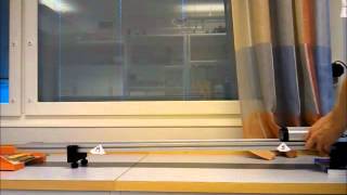 En vagn accelerar från stillastående nedför ett lutande plan. Bestäm medelaccelerationen då ni vet att vagnen åker 60cm på en viss tid.