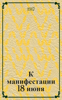 Центральная комиссия по организации манифестации 18 июня. К манифестации 18 июня. Постановления Центральной комиссии по организации манифестации : [листовка]. - [Петроград, Петроградская губ.] : Типография "Копейка", [1917, июнь 16]. - [1] л. ; 29х20 см