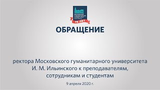 Обращение ректора Московского гуманитарного университета И.М. Ильинского 9 апреля 2020 г.