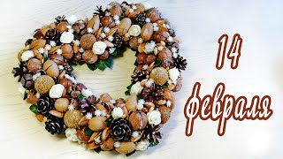 Подарок СЕРДЦЕ на 14 февраля или 8 марта своими руками из шишек и орехов