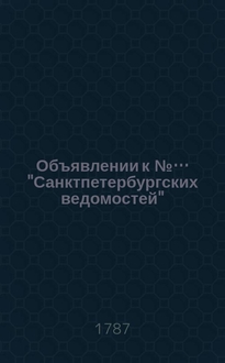 Объявлении к № ... "Санктпетербургских ведомостей" : [Казенные. Подряды]. 1785, к № 63 (8 авг.):. - 1785