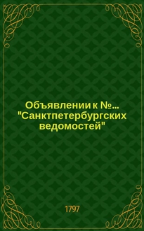 Объявлении к №… "Санктпетербургских ведомостей" : [Казенные. Подряды]. 1786, к № 37 (8 мая)
