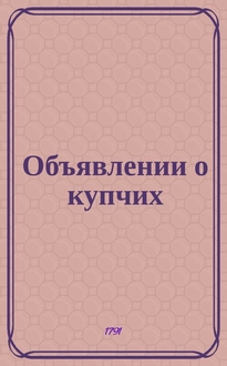 Объявлении к № ... "Санктпетербургских ведомостей" : [Казенные. Подряды]. 1786, к № 87 (30 окт.)