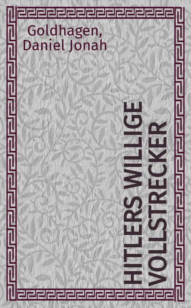 Goldhagen D. J. Hitlers willige Vollstrecker : ganz gewöhnliche Deutsche und der Holocaust / Daniel Jonah Goldhagen; aus dem Amerikan. von Klaus Kochmann. - [3. Aufl.]. - Berlin : Siedler, 1996. - 728, [1] c : ил., портр., карт. ; 22 см. - Библиогр.: с. 687-708. - Указ.: с. 709-728