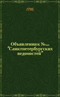 Объявлении к № ... "Санктпетербургских ведомостей" : [Казенные. Подряды]. 1787, № 75 (17 сент.):. - 1787