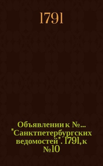 Объявлении к № ... "Санктпетербургских ведомостей" : [Казенные. Подряды]. 1788, № 49 (20 июня):. - 1788