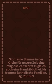 Sion : eine Stimme in der Kirche für unsere Zeit eine religiöse Zeitschrift zugleich auch eine Hausbibliothek für fromme katholische Familien. Jg. 27 1858, № 87