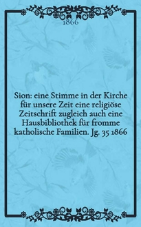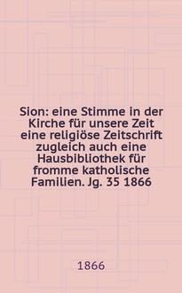 Sion : eine Stimme in der Kirche für unsere Zeit : eine religiöse Zeitschrift zugleich auch eine Hausbibliothek für fromme katholische Familien / hrsg. durch einen Verein von Katholiken. Jg. 27 1858, № 136:. - 1858