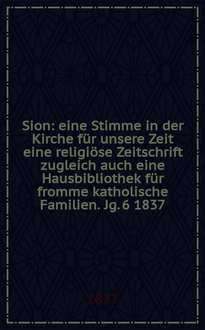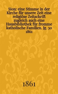 Sion : eine Stimme in der Kirche für unsere Zeit : eine religiöse Zeitschrift zugleich auch eine Hausbibliothek für fromme katholische Familien / hrsg. durch einen Verein von Katholiken. Jg. 28 1859, № 35:. - 1859
