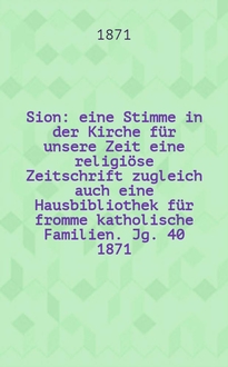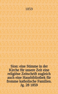 Sion : eine Stimme in der Kirche für unsere Zeit eine religiöse Zeitschrift zugleich auch eine Hausbibliothek für fromme katholische Familien. Jg. 28 1859, № 75