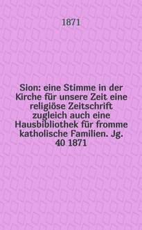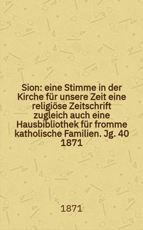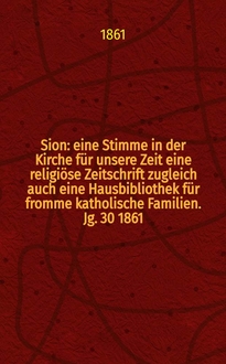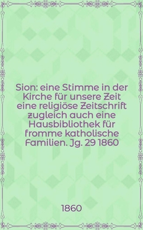 Sion : eine Stimme in der Kirche für unsere Zeit eine religiöse Zeitschrift zugleich auch eine Hausbibliothek für fromme katholische Familien. Jg. 29 1860, № 141