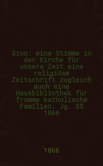 Sion : eine Stimme in der Kirche für unsere Zeit eine religiöse Zeitschrift zugleich auch eine Hausbibliothek für fromme katholische Familien. Jg. 30 1861, № 118