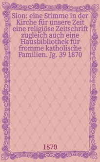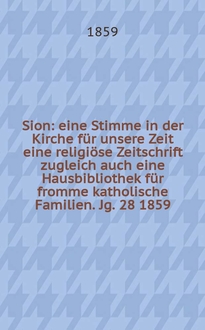 Sion : eine Stimme in der Kirche für unsere Zeit : eine religiöse Zeitschrift zugleich auch eine Hausbibliothek für fromme katholische Familien / hrsg. durch einen Verein von Katholiken. Jg. 35 1866, № 36:. - 1866