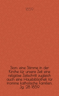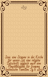 Sion : eine Stimme in der Kirche für unsere Zeit : eine religiöse Zeitschrift zugleich auch eine Hausbibliothek für fromme katholische Familien / hrsg. durch einen Verein von Katholiken. Jg. 39 1870, № 101:. - 1870