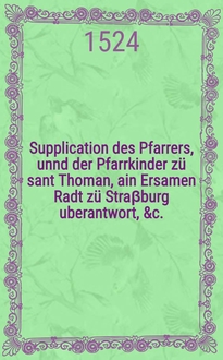 Supplication Kaiserlicher Maiestat: zu Regensburg auff dem Reichstag, uberantwortet, Durch die Freundtschafft, der todten Jungfrawen zur Stauffenburg. Anno. M.D.XLI. // Supplication: an Kaiserliche Maieiestat [!], Der Mortbrenner halben, Auff dem Reichstag, zu Regenspurg, Kaiserlicher Maiestat uberantwort etc.